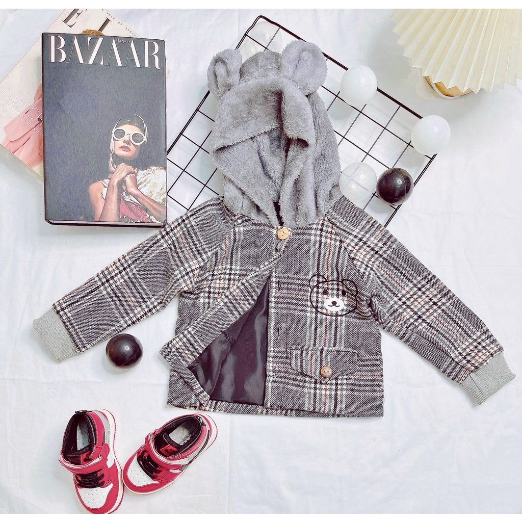 Giới thiệu (7-18kg) Áo khoác trẻ em có mũ tai gấu vải dạ kẻ QATE411 - Áo khoác cho bé sành điệu TB135