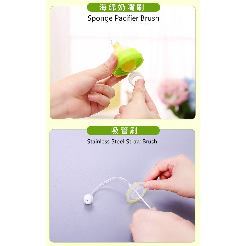 Seven-piece set: A sponge brush A nylon brush A sponge pacifier brush A nylon pacifier brush One rusty steel straw brush One PP straw brush A bottle clip
