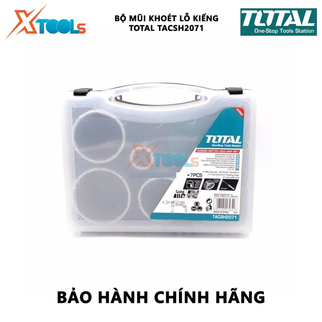 - Bộ 7 mũi khoét lỗ 33-83mm Total TACSH2071 có lưỡi được làm bằng hợp kim, sắc bén nên rất dễ dàng tạo ra các lỗ có độ chính xác cao, đạt yêu cầu công việc. Sản phẩm có khả năng khoét lỗ trên bề mặt của nhiều chất liệu như: nhựa, gỗ, kim loại, vách thạch cao, mica,…với các kích cỡ: 33mm, 53mm, 67mm, 73mm, 83mm.
