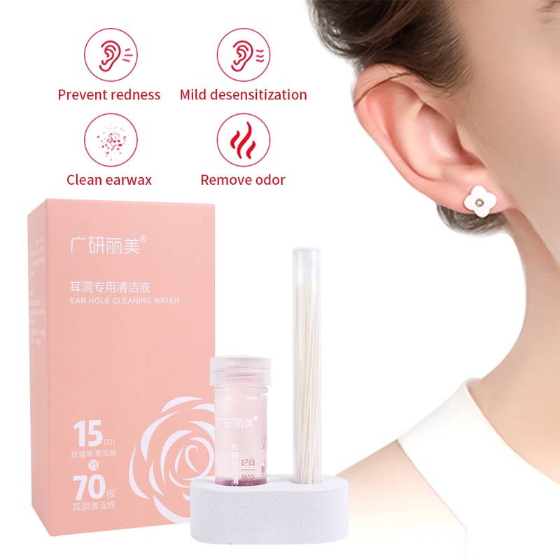 ❣Thông tin chi tiết Tên sản phẩm: Đường làm sạch lỗ tai Thương hiệu: Guangyan Limei Chất liệu: Sợi bông Kích thước: 12,5 * 7cm Số lượng: 70 vạch tai xuyên thấu + Dung dịch vệ sinh 15ml / bộ