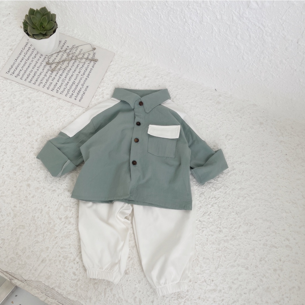 Giới thiệu (8-18kg) Set Sơ Mi Dài Tay Phong Cách Hàn Quốc Dành Cho Bé Yêu - Babi mama - BM05