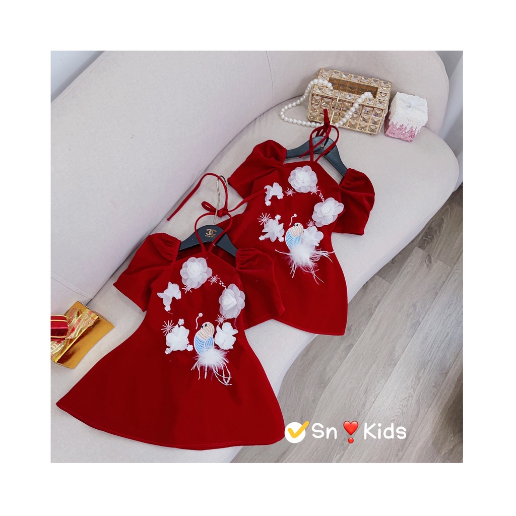 8/30kg VÁY NHUNG CHIM THIẾT KẾ QUÁ ĐẸP CHẤT LIỆU NHUNG MƯỚT ĐẸP THIẾT KẾ SANG XỊN BÉ DIỆN TẾT HẾT Ý SIZE 8/30KG