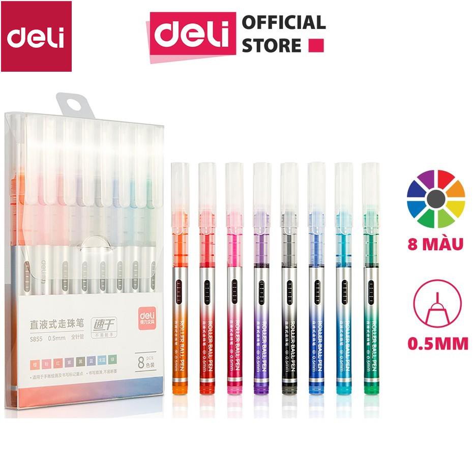 Bộ 8 bút gel nhiều màu Deli - 0.5mm - Mực trơn đều - 8 màu 8 chiếc/Hộp - Caligraphy, liner, đi nét -1 hộp - S855 [Deli]