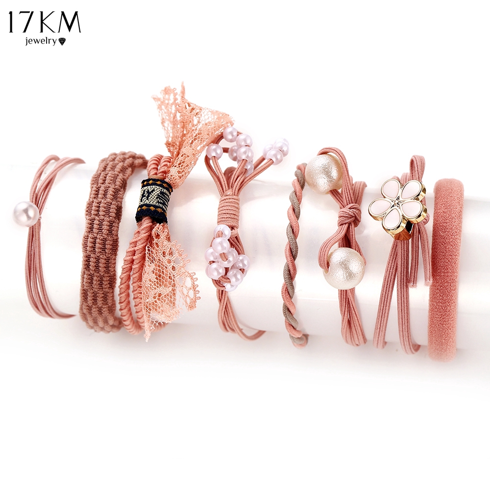 Tên sản phẩm: Dây cột tóc 17KM màu hồng phối ren hoa và ngọc trai xinh xắn Chất liệu: Dây cao su Màu sắc: như hình Phong cách: đơn giản & thời trang Nhân dịp: Quà tặng sinh nhật, tiệc Gói hàng bao gồm: 8 chiếc/ túi