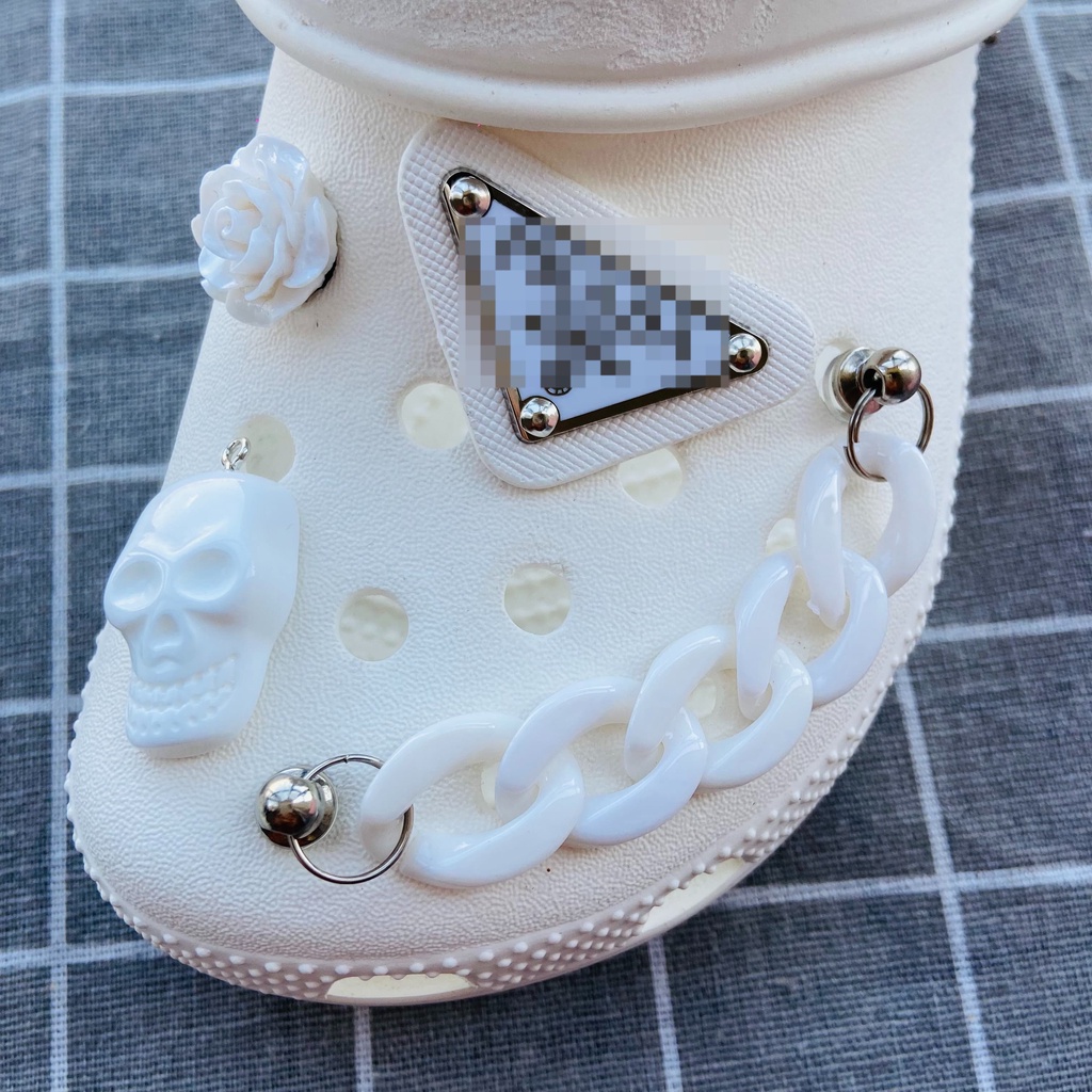 Giới thiệu Bộ 8 Nút Giày Màu Trắng Hình Cún/Gấu/R croc jibz Thời Trang#Loạt Đen Trắng