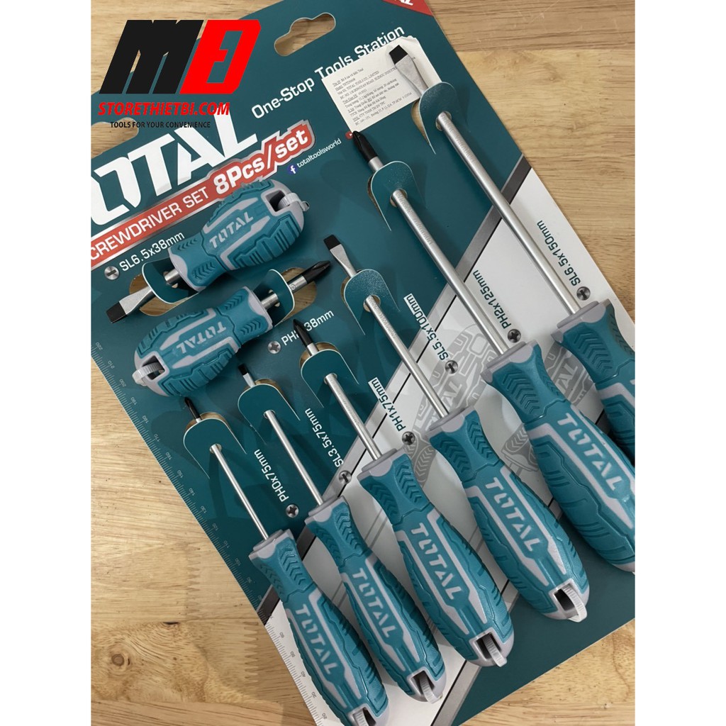 -Bộ tua vít Total THT250608 đây thật sự là bộ dụng cụ cầm tay đa năng chuyên dùng để vặn/mở ốc vít, gồm có 8 cây (4 vít dẹp và 4 vít bake).