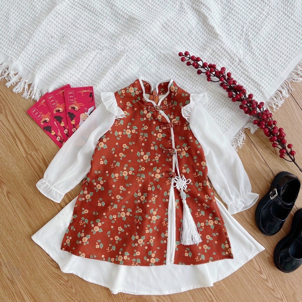 Giới thiệu (9-25kg) Váy bé gái đi chơi đi tiệc Áo dài bé gái cách tân mẫu mới QATE862 TB192