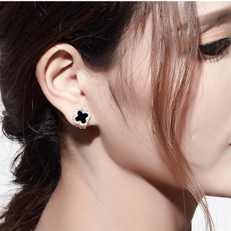 Giới thiệu 925 Silver Clover Shaped Earrings with Luxury Gemstones