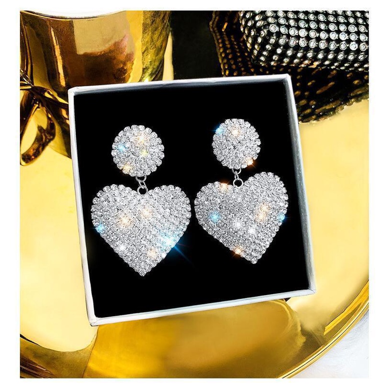 Giới thiệu 925 Silver Plated Earrings Heart Shaped with Rhinestones