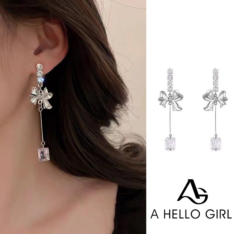 Giới thiệu Ahellogirl Bông Tai Mạ Bạc 925 Hình Nơ Đính Đá Zircon Phong Cách Hàn Quốc Đơn Giản Thời Trang