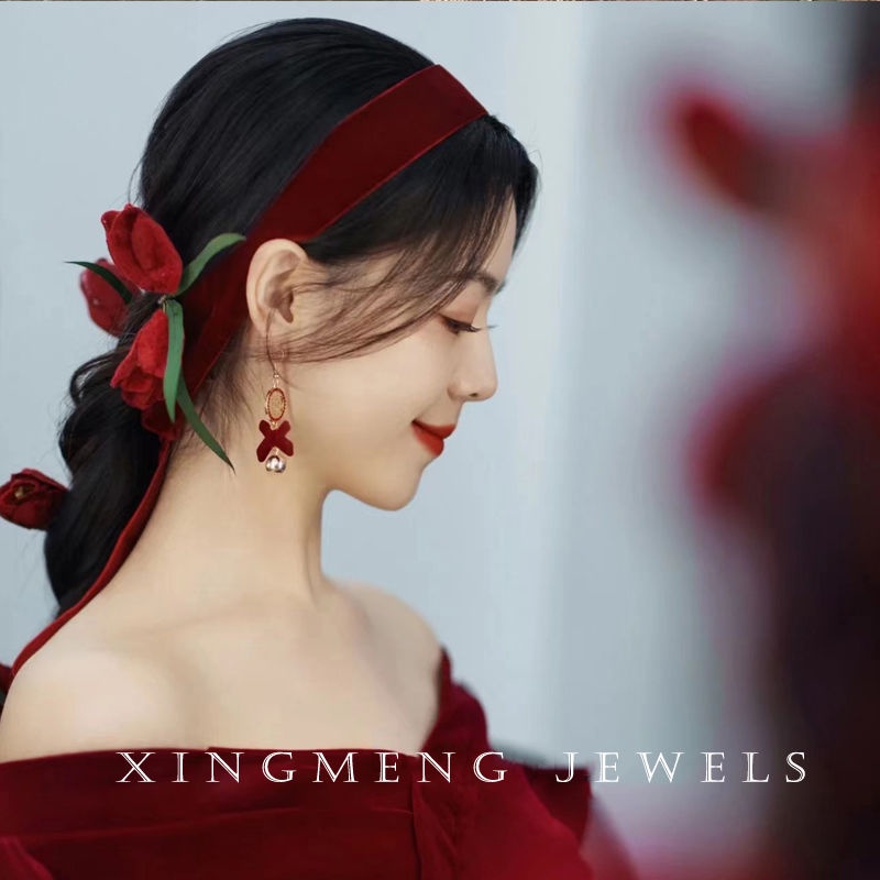 Giới thiệu [Aishang Xinh Đẹp] Phụ Kiện Cài Tóc Hoa Đỏ Phong Cách Xiuhe Trung Quốc Phụ Kiện Chụp Ảnh Cưới / Ngày Lễ Xiuhe