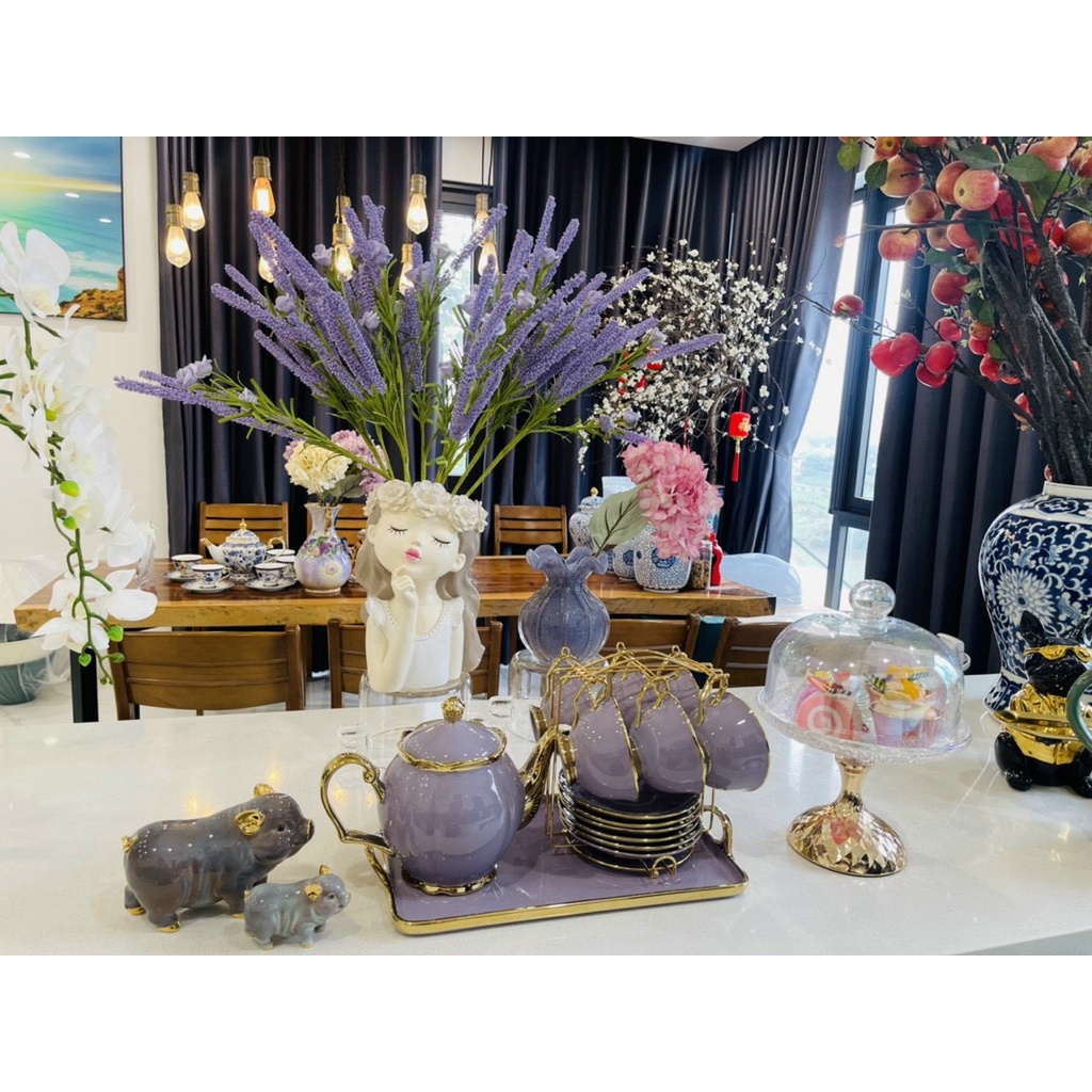 Giới thiệu Ấm chén màu tìm. Ấm chén phà trà màu tím. Bộ tách pha trà