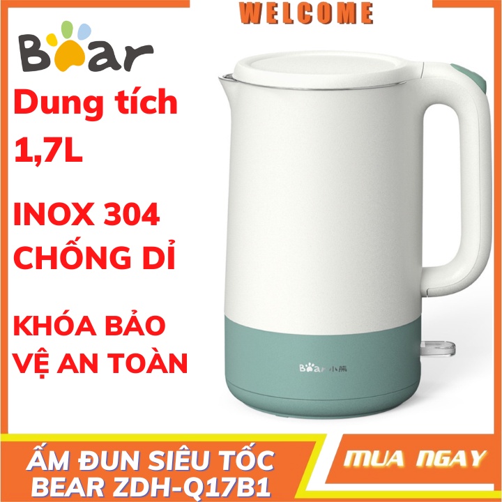 Thiết Bị Điện Gia Dụng > Đồ gia dụng nhà bếp > Ấm siêu tốc & Bình thủy > Ấm siêu tốc Bear 1.7L 1500W ấm đun siêu tốc, lõi Inox chống gỉ - Bảo hành 12 tháng