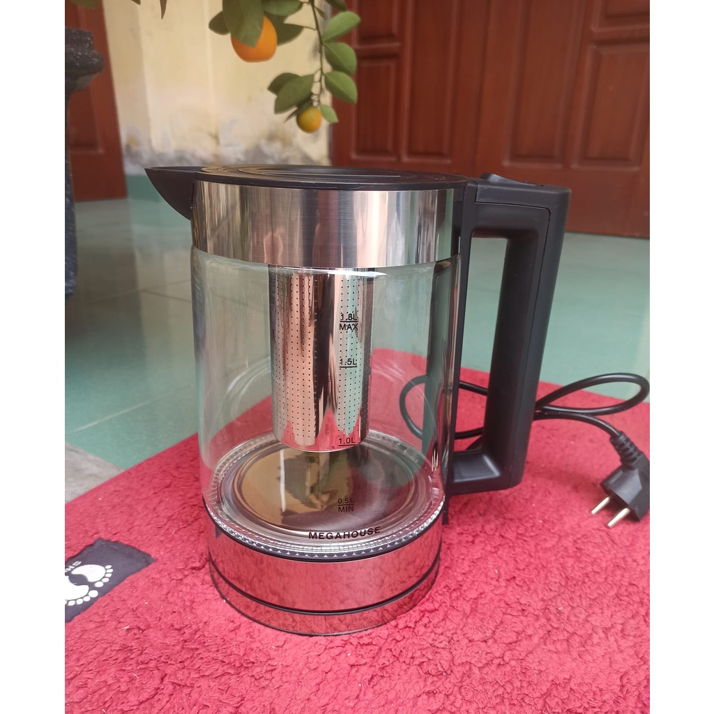ẤM SIÊU TỐC MEGAHOUSE siêu đẹp - xịn xò Ấm siêu tốc 1.8 lít bình siêu tốc thủy tinh MEGAHOUSE từ gồm lõi lọc trà bằng inox, bảo hành 1năm. ✅✅✅ - Dung tích: 1.8L - Công suất: 1850W-2200W - Chất liệu: Thủy tinh, Inox, nhựa PP cao cấp - Đế xoay 360 độ có thể đun nước ở nhiều góc độ khác - Lõi lọc bằng inox có thể tháo rời dùng để pha trà, nước đỗ đen, nước lá,... - Đèn hiển thị khi đun nước và tự ngắt điện khi nước đã sôi - Khóa nắp an toàn cùng tay cầm cách nhiệt chắc chắn - Thiết kế hiện đại, sang trọng -Chất liệu cao cấp -Tích hợp đế xoay thông minh