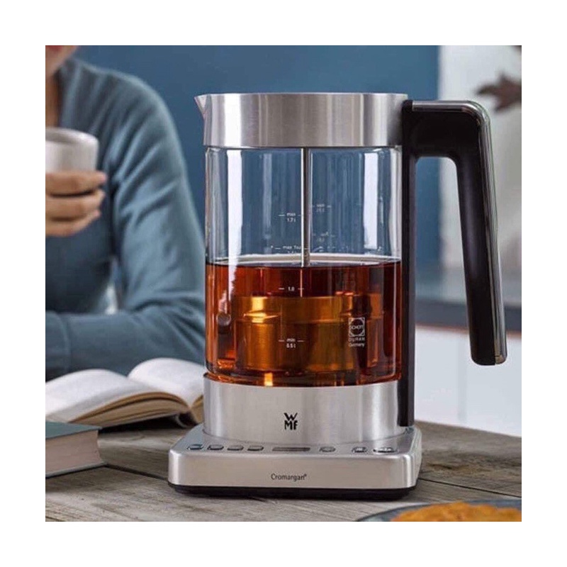 - Sản phẩm mới của hãng WMF với chức năng 2 in 1 tiện dụng, vừa là ấm siêu tốc vừa là bình trà với thời gian giữ nhiệt khi dùng làm bình trà lên đến 40 phút. - Thiết kế sang trọng, tinh tế, chất liệu cao cấp Cromargan 18/10 và thân ấm bằng thủy tinh Schott Duran. - Bốn cài đặt nhiệt độ 70°C, 80°C, 90°C, 100°C cho các loại trà khác nhau như trà xanh, trà trắng, trà ô long... kết hợp cùng chất liệu thân ấm bằng thủy tinh đảm bảo tận dụng được tối đa mùi thơm của lá trà