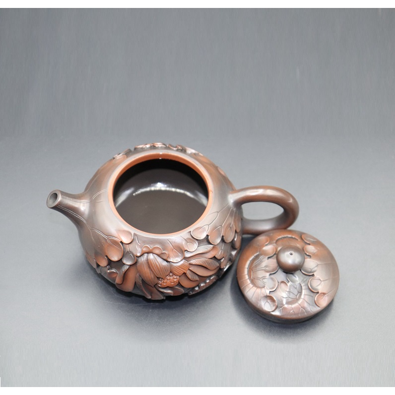 Ấm Tử Nê Khâm Châu Khắc Tay Liên Hoa