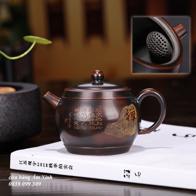 Ấm Tử Nê Khâm Châu Tâm Thiền 230 ml (Lọc Tổ Ong) (nguyên khoáng Tử Nê Khâm Châu)