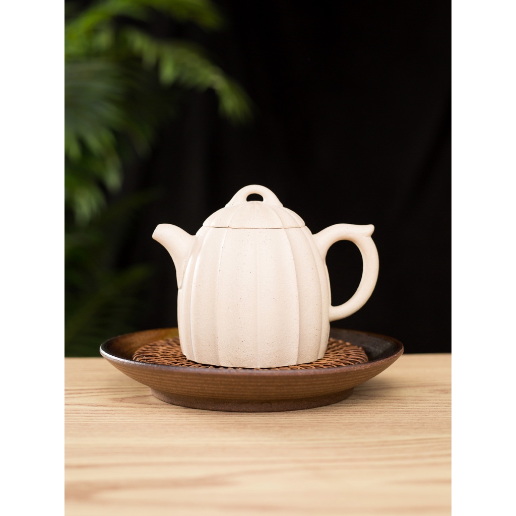 Ấm Tử Sa Nghi Hưng Tần Quyền Cân Văn 240 ml (Bạch Ngọc Đoạn Nê)