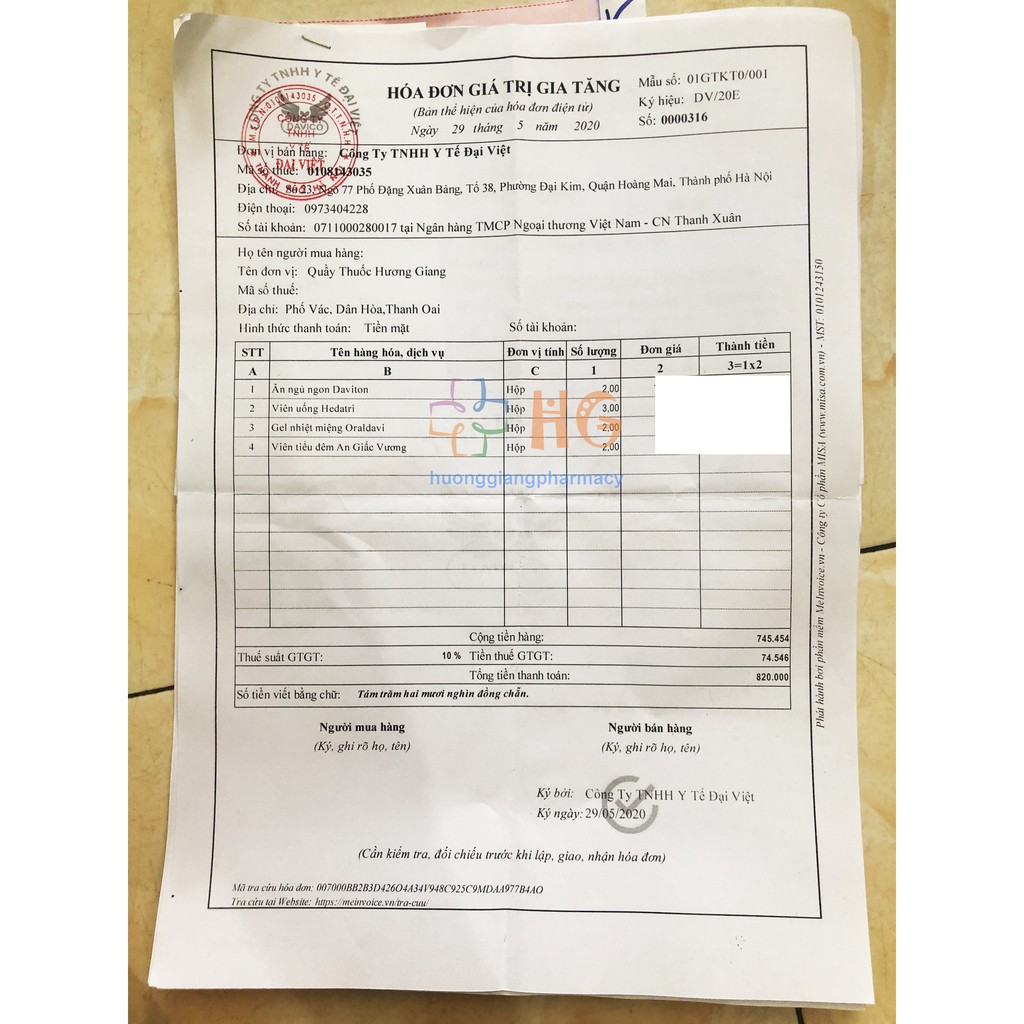 ✅ Sản xuất tại: Xưởng sản xuất của Công ty Cổ phần Dược Phẩm Santex ✅ Thương nhân chịu trách nhiệm về chất lượng sản phẩm: Công ty TNHH Y tế Đại Việt