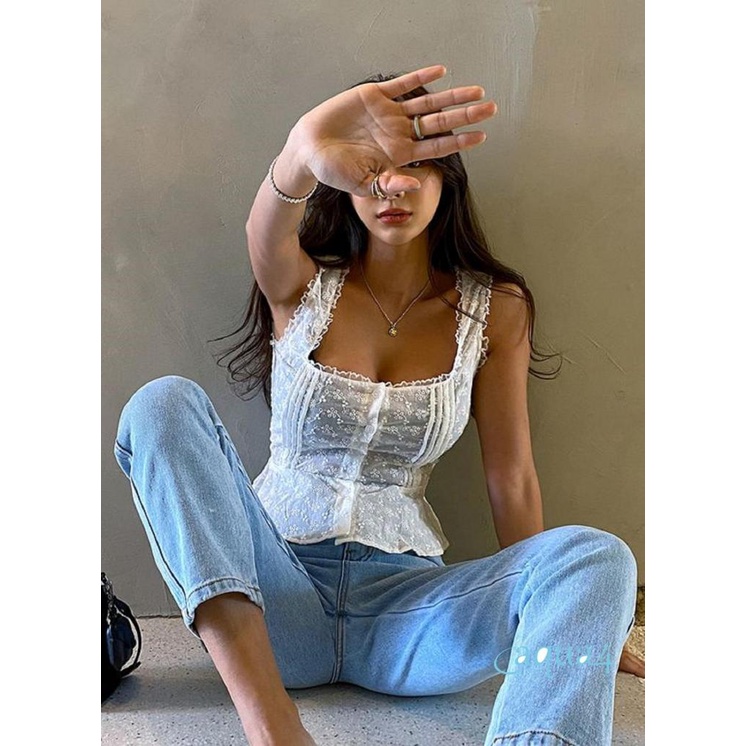 Giới thiệu Anana-áo Croptop Hai Dây Phối Ren Bèo Màu Trắng Phong Cách Vintage Y2K Fairy Grunge Đáng Yêu Cho Nữ