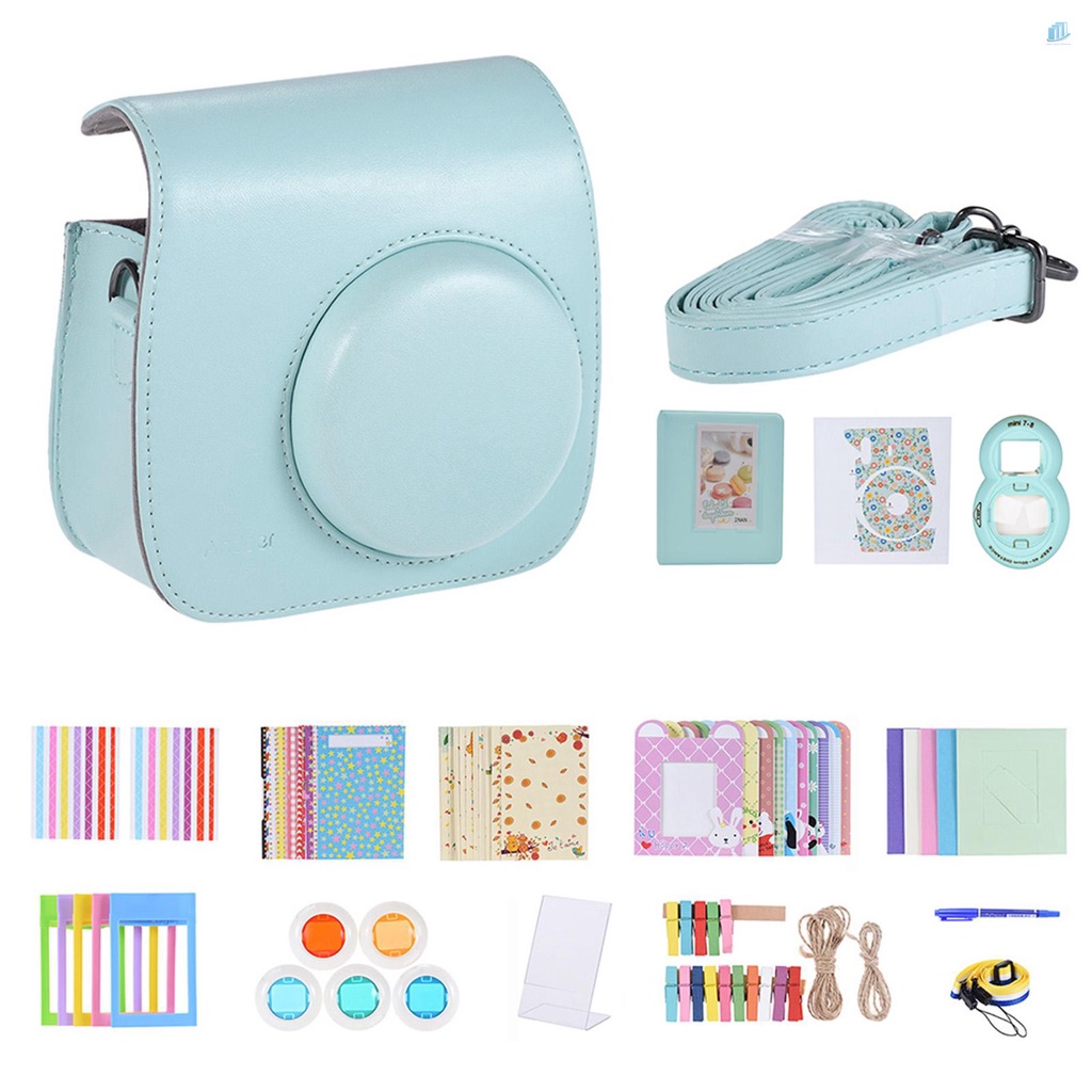 Đồng hành tốt nhất 14 trong 1 thay thế phụ kiện cho Fujifilm Instax Mini 9/8 + / 8, bao gồm hộp đựng máy ảnh, ống kính selfie, bộ lọc, 2 loại nhãn dán ảnh, 4 loại khung ảnh, album, nhãn dán góc, nhãn dán máy ảnh, dây đeo Và cây bút.