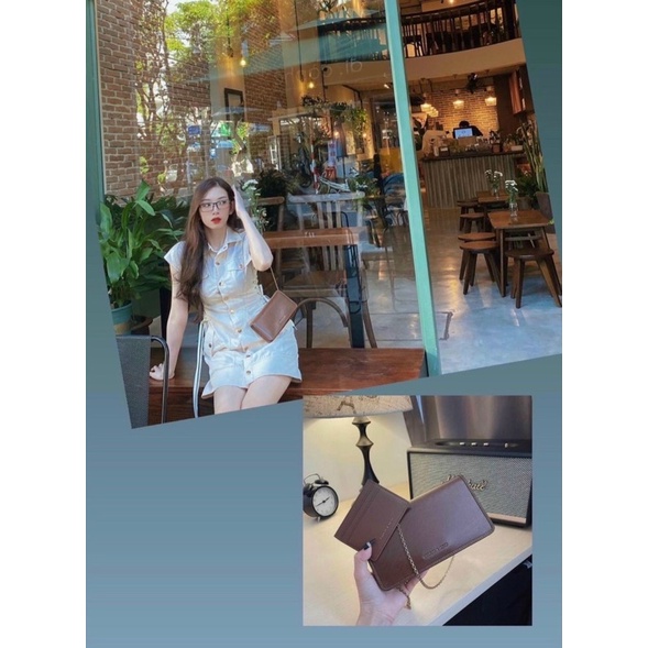 (Ảnh cận) Sét túi ví nữ hàng quảng châu chữ C bản mới nhất có dây xích đeo chéo đeo vai - Bản vân da chuẩn đẹp bên trong có ngăn đựng thẻ - Size 19 đựng vừa điện thoại Cam kết nhận hàng y hình