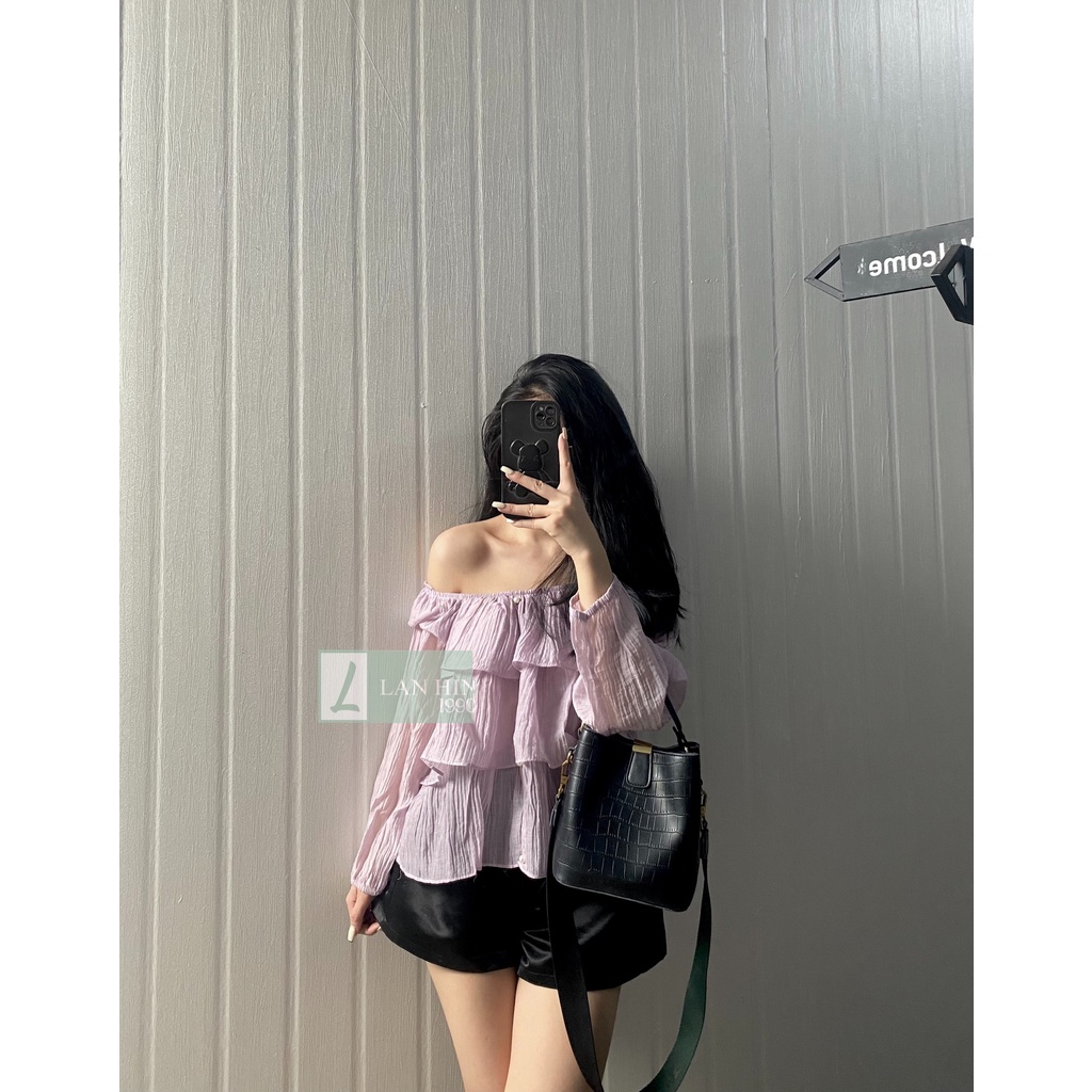 Giới thiệu [Ảnh Thật] Áo Nữ Đũi Tơ Tầng Dáng Ngắn Cổ Vuông Chun 4 Màu [LanHin90]