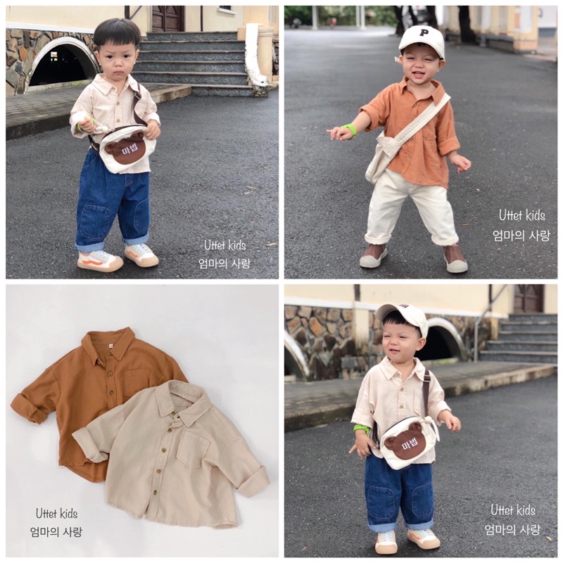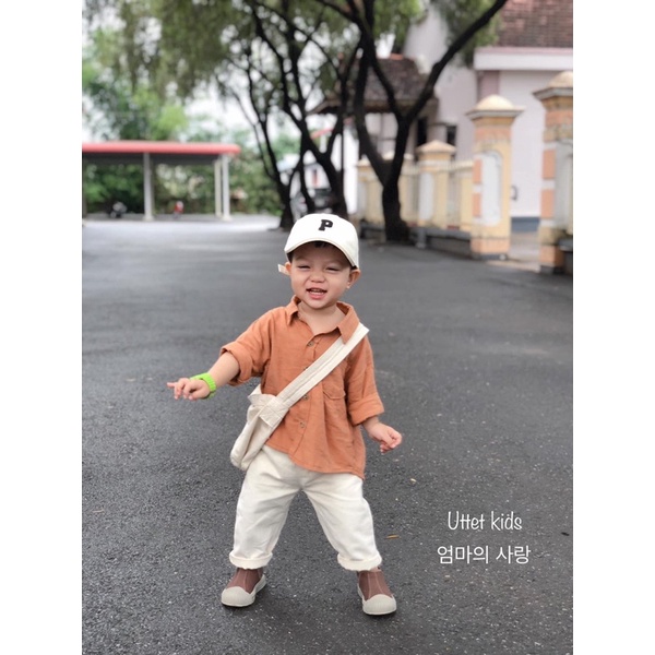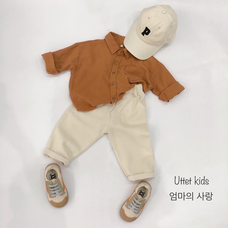 Một chiếc sơ mi trơn hàn quốc 2 màu be và cam đất cực kỳ xinh xắn và cute. Áo rất nhẹ , mềm mại dễ phối đồ và thích hợp cho cả bé gái và bé trai Tết này không thể thiếu một chiếc sơ mi được ạ. Mình có thể mặc rời hoặc làm chiếc áo khoác sơ mi nhẹ cũng rất đẹp. Áo form chuẩn size nên các mẹ lưu ý chiều cao cân nặng giúp mình với ạ