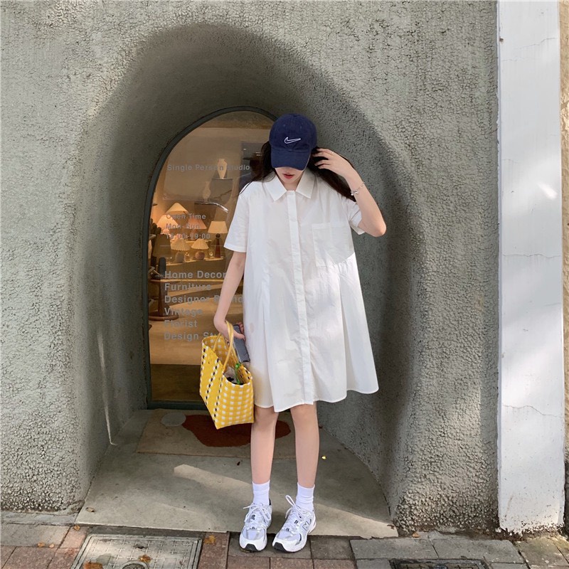 Váy sơ mi thô mềm xếp ly