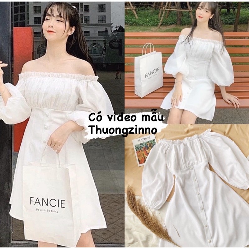 Giới thiệu [Ảnh thật/Video] Váy trắng tiểu thư phối cúc bọc Đầm trắng trễ vai mặc được 2 kiểu