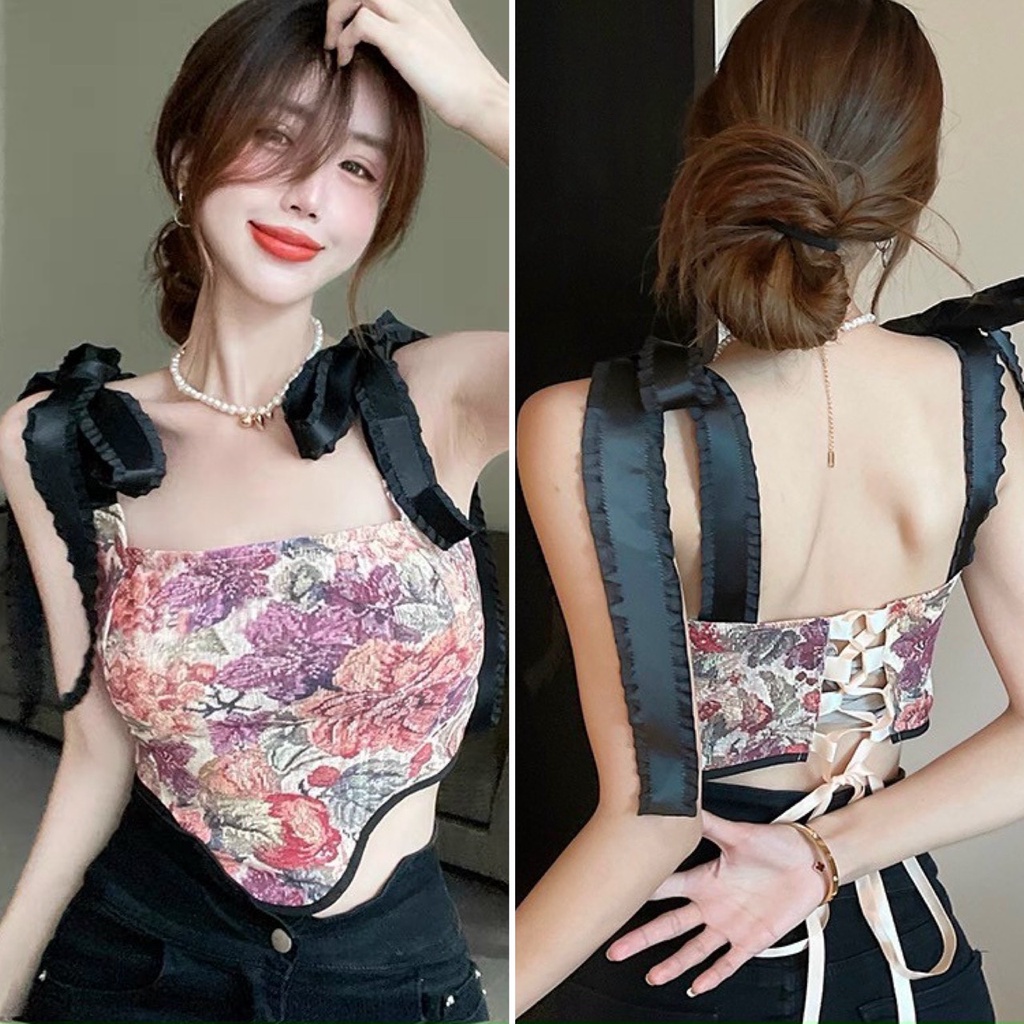 Giới thiệu Áo 2 dây thắt nơ đai lưng họa tiết hoa vintage