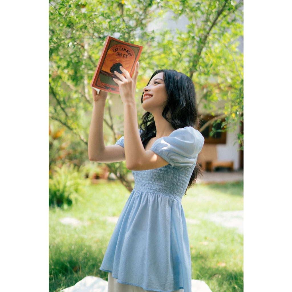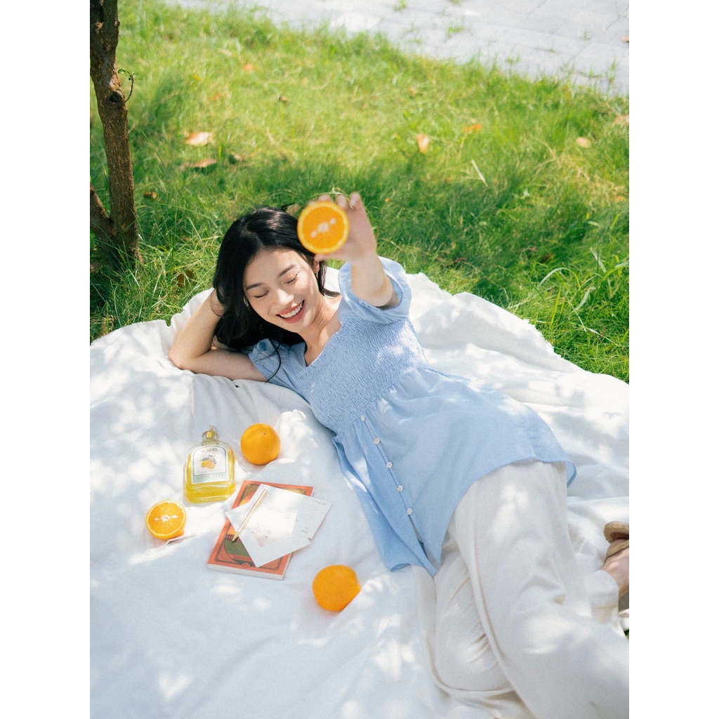 Giới thiệu Áo babydoll dập nhún ngực mở cúc màu xanh blue MADELEN