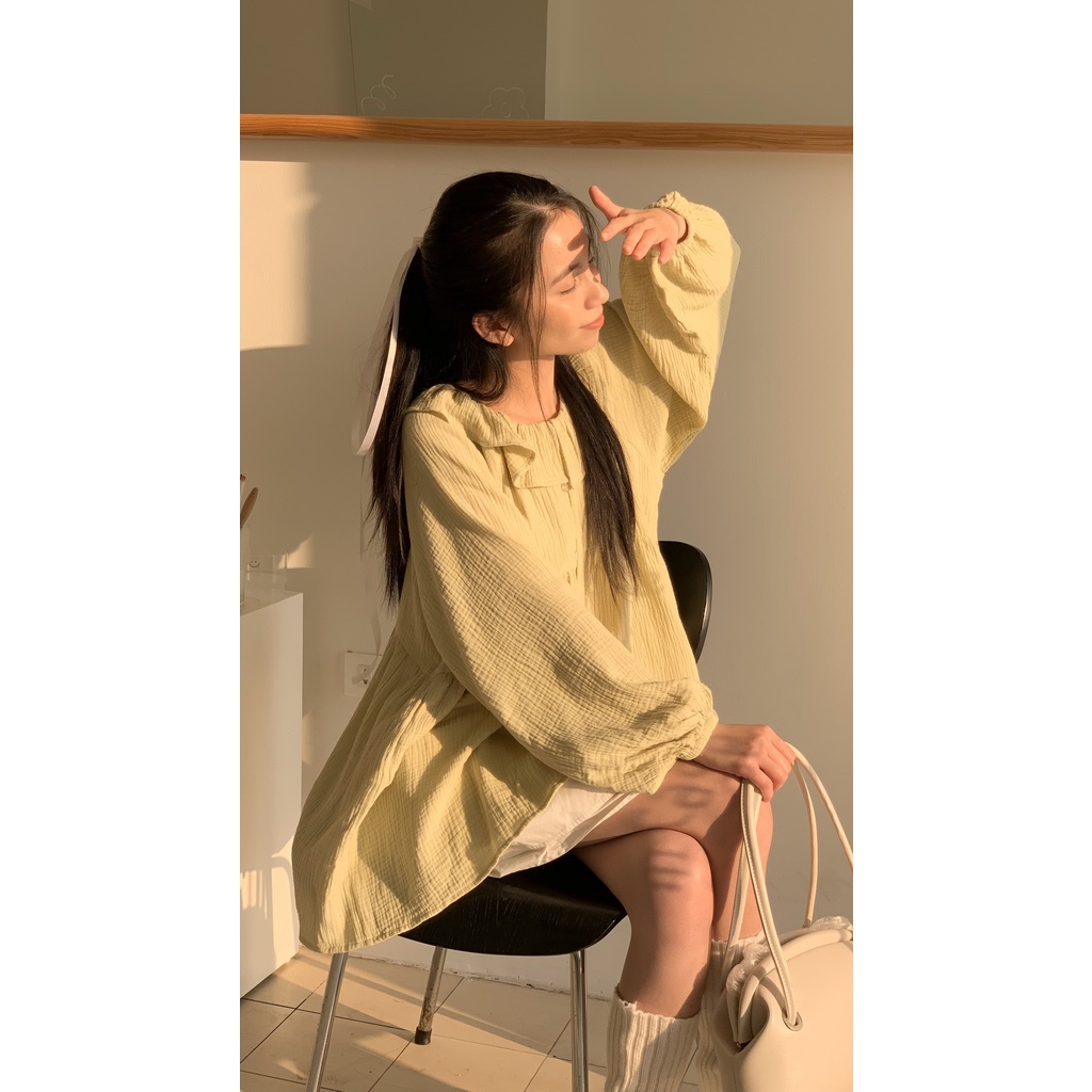THÔNG TIN SẢN PHẨM: - Áo babydoll xô muslin cổ bèo cúc hoa - Chất xô muslin mềm mịn, mát - Áo có 2 size: S/M