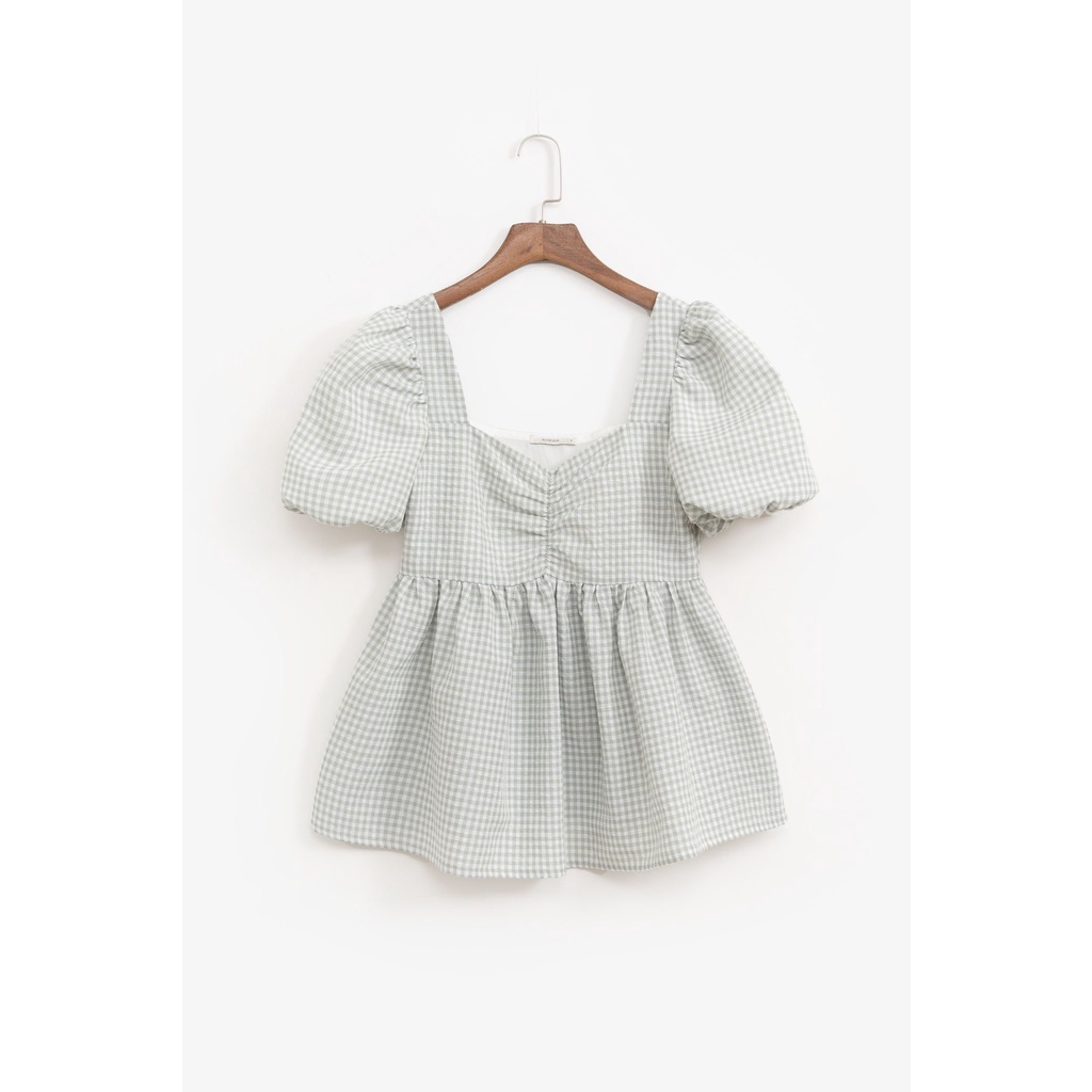Giới thiệu Áo babydoll tay bồng MADELEN kẻ gingham xanh