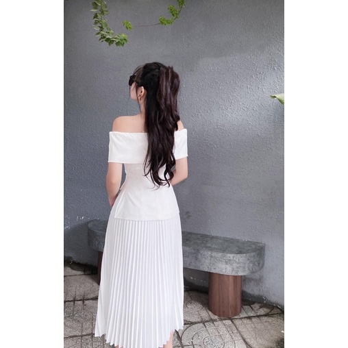 Giới thiệu ÁO BẸT VAI SANG CHẢNH MÀU TRẮNG VÀ CHÂN VÁY DẬP LY TRẮNG VINTAGE KÍN ĐÁO SUNFASHION