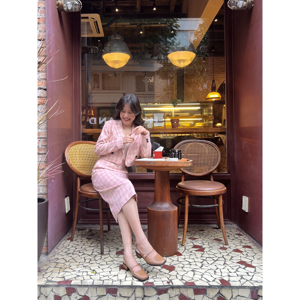 Giới thiệu Áo blazer croptop kẻ caro và chân váy cùng set blazer kẻ MADELEN