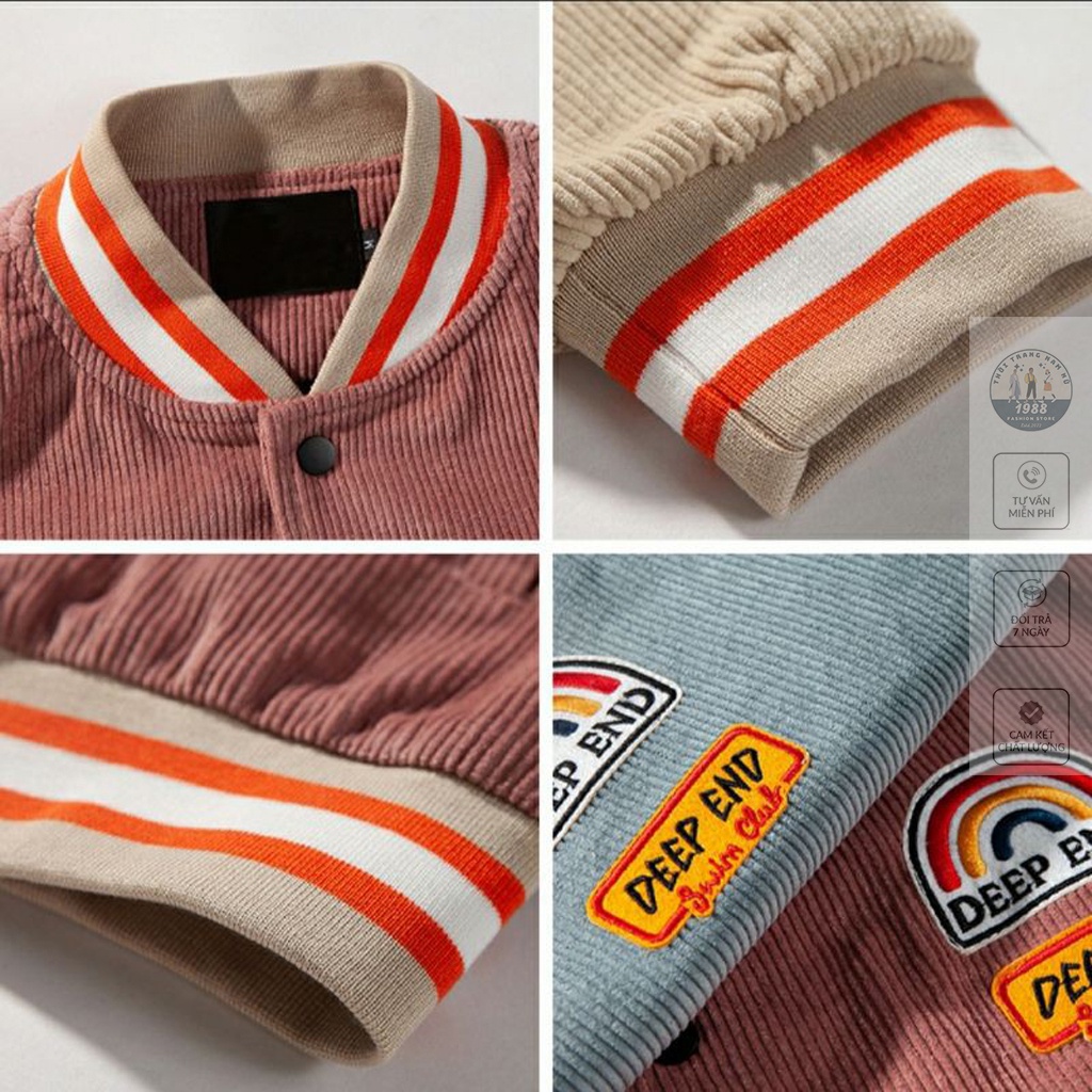Giới thiệu Áo Bomber Nhung Tăm Deep End, Áo Khoác Nhung Tăm Cúc Bấm Dáng Rộng