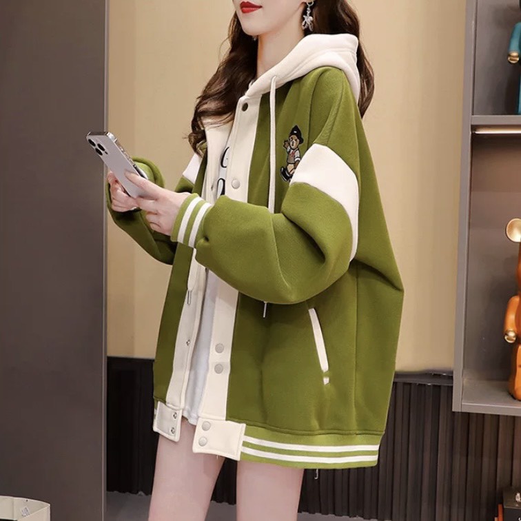 Giới thiệu Áo Bomber Unisex - Áo khoác nỉ Hoodie mũ trùm đầu 2 lớp thêu hình gấu dễ thương