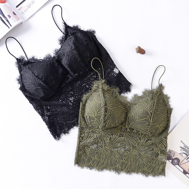 Giới thiệu Áo Bra Nữ Ren Hoa Lá Dáng Lửng Sexy 2 dây không gọng nâng ngực co giãn freesize AL6
