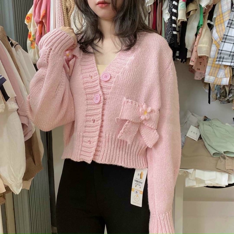 Giới thiệu Áo cadigan len nơ trắng hồng siêu cưng, len Quảng dày dặn