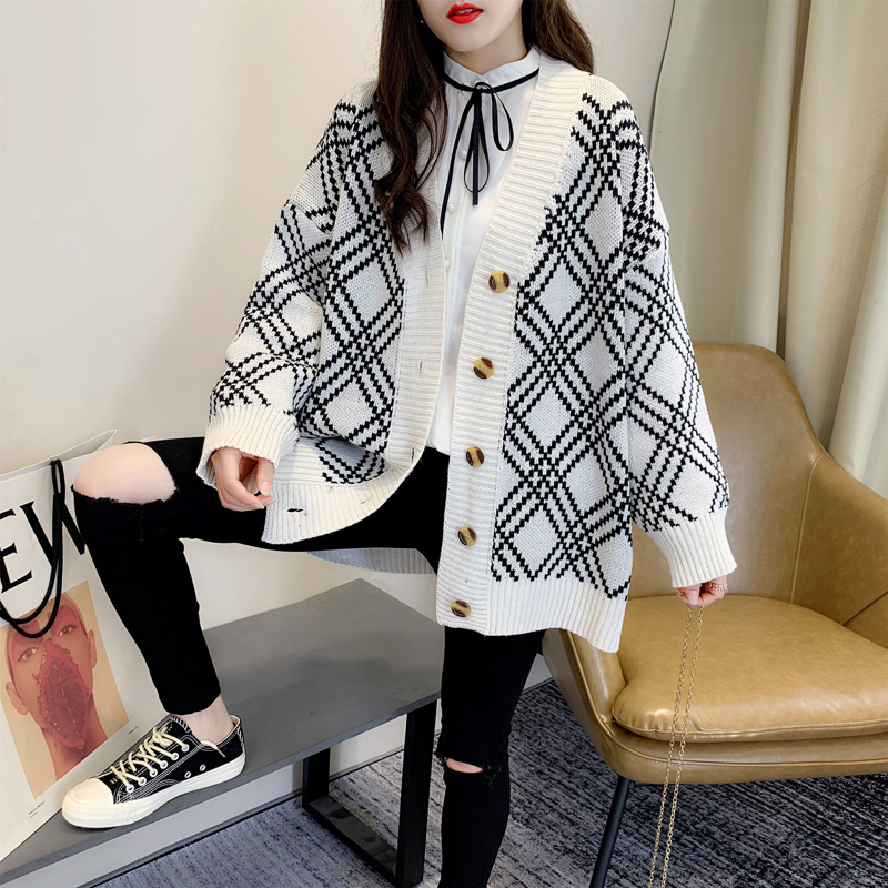 Giới thiệu Áo Cardigan Dệt Kim Tay Dài Cổ Chữ V Họa Tiết Sọc Caro Phong Cách Retro