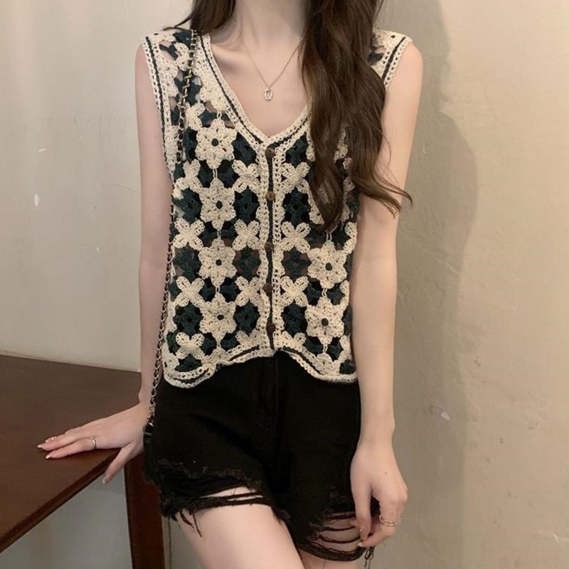 Giới thiệu Áo Cardigan Lửng Không Tay Cài Nút Họa Tiết Hoa Cho Nữ
