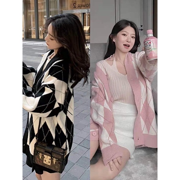 Giới thiệu Áo cardigan Trám sọc Len dệt Kim mỏng ulzzang phong cách hàn quốc -Mẫu mới 2021 /2Màu hồng đen (kèm ảnh Thực Tế)