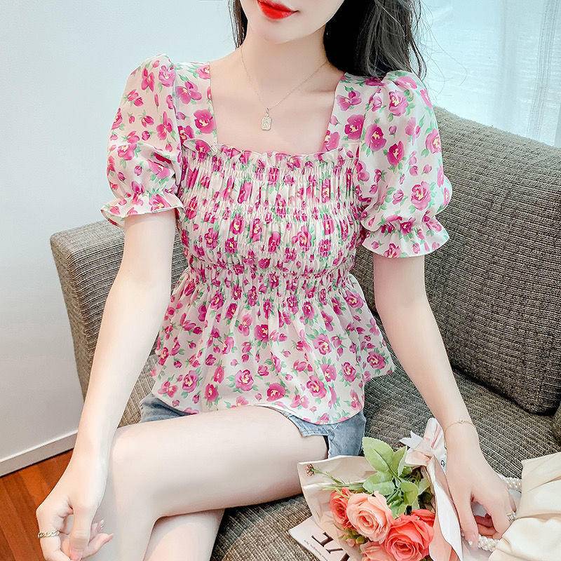 Giới thiệu Áo Chiffon Cổ Vuông Tay Ngắn Phồng In Họa Tiết Hoa Thời Trang Mùa Hè 2022 Mới Cho Nữ