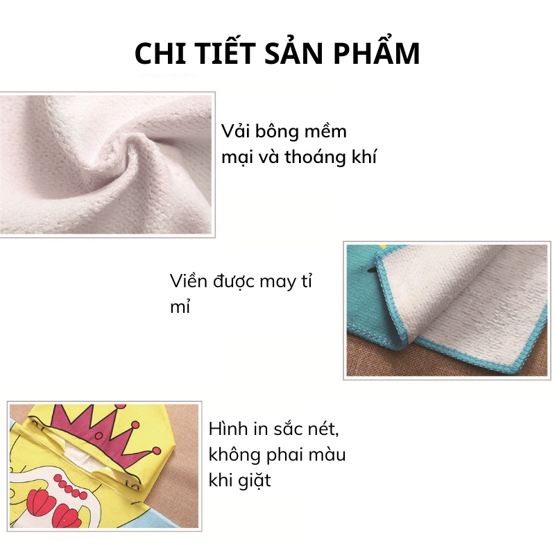 Áo choàng tắm, khăn choàng tắm cho bé trai bé gái chống lạnh có mũ trùm đầu kích thước 60*120cm Xu Xu Kids ✴ Đặc điểm nổi bật ✓ Chất liệu: Sợi coton thấm nước ✓ Sử dụng làm khăn tắm chống lạnh cho bé khi đi biển đi bơi, khi bé tắm lên bờ nghỉ ngơi, chơi cát.... ✓ Sử dụng thay áo chống nắng, chống bụi bản cho bé khi đi ra ngoài ✓ Khăn đắp cho bé khi nằm máy lạnh ✓ Khăn có nhiều màu sắc và hình vẽ ngộ nghĩnh phù hợp với sở thích bé yêu ✓ Khăn tắm cho bé có chất liệu mềm mại, thấm hút tốt, chống lạnh cho bé khi đi bơi, đi biển. ✓ Khăn choàng tắm kích thước khi bé mang lên người 60cm X 60cm. (60cmx120cm khi trải dài)
