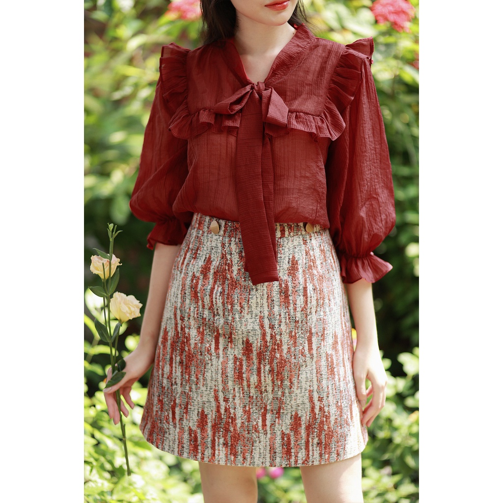 Áo cổ nơ bèo ngực đỏ trong BST "Chạm Vào Thu" của thương hiệu Her 25. Sản phẩm thuộc thiết kế độc quyền của Her 25 với mong muốn mang lại cho các chị em những sản phẩm độc đáo và thanh lịch nhất!