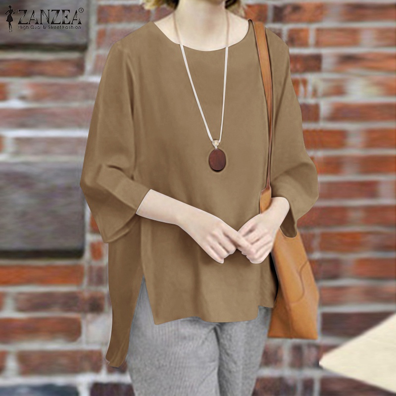 Giới thiệu Áo cổ tròn ZANZEA tay 3/4 màu trơn thời trang retro Hàn Quốc cho nữ