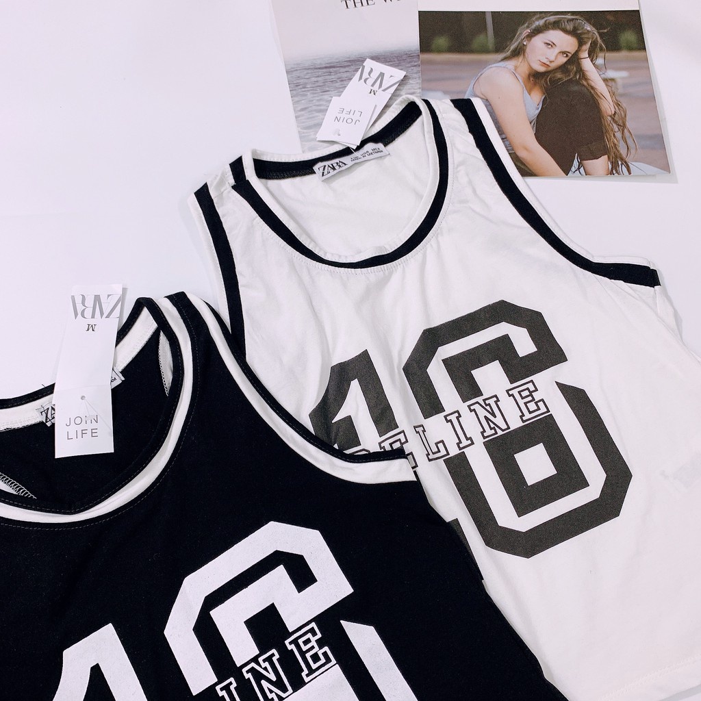 Giới thiệu Áo croptop 3 lỗ in hình số 16 siêu chất, áo sát nách hai dây bản to phong cách thể thao