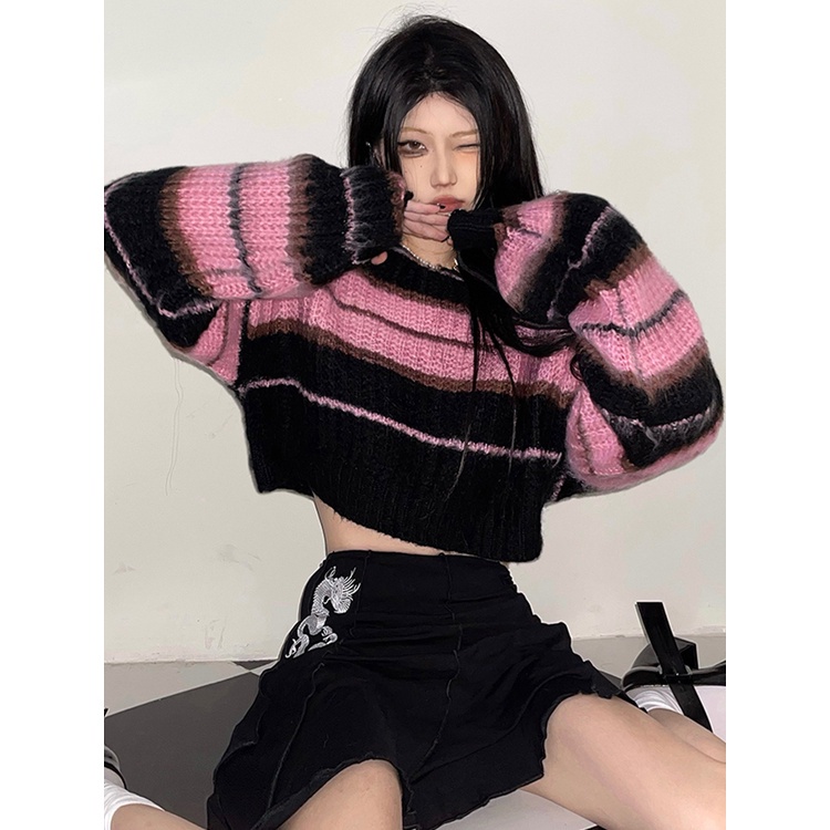Giới thiệu Áo croptop dáng rộng họa tiết kẻ sọc phong cách Hàn Quốc thời trang thu đông quyến rũ cho nữ