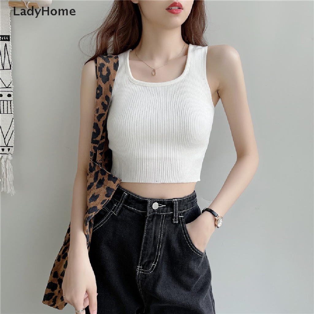 Giới thiệu Áo Croptop Dệt Kim Không Tay Cổ Chữ U Màu Sắc Trơn Gợi Cảm Cho Nữ